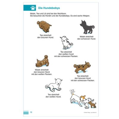 Kleine Geschichten rund um die Leitfiguren Tea, Malek und Hund Lili laden die Kinder im Hör-Lese-Buch dazu ein, in deren fiktive Welt einzutauchen. Mithilfe des BOOKii Hörstifts können sich die Schüler*innen von Beginn an hörend einen grundlegenden Wortschatz aneignen. Durch Antippen liest der Stift ihnen alle gedruckten Wörter und Sätze sowie die dazugehörigen Bilder vor und schult so ihr Hörverstehen. Dabei lernen die Kinder automatisch erste grammatische Strukturen. Viele Gespräche der Leitfiguren lassen sich in Partnerarbeit nutzen.