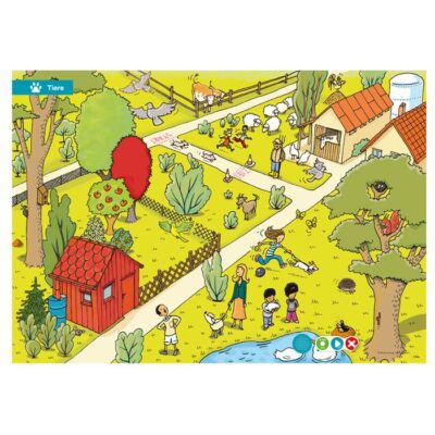 Die sechs Postermotive aus dem Ordner finden sich auch am Anfang eines jeden Themenkapitels im Hör-Lese-Buch wieder und bieten eine Fülle an Wortschatz und Strukturen. Die Kinder haben auf jeder Doppelseite die Möglichkeit, das sprachlich Gelernte aktiv anzuwenden, indem sie sich mit dem Mikro des BOOKii Hörstifts aufnehmen und kleine Arbeitsaufträge ausführen: Fragen beantworten, von sich erzählen, Mitschüler*innen interviewen.