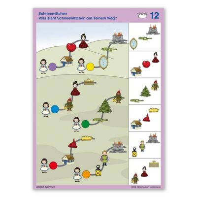 Das LOGICO-Set PRIMO “Märchenhaft kombinieren” enthält Aufgaben zu folgenden Themen: