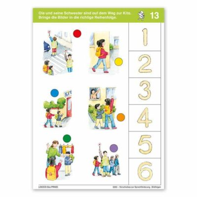 Konzipiert wurde die Box für die Arbeit mit Kindern ab 5 Jahren. Jeweils drei identische Karten zu unterschiedlichen Themen und Inhalten machen es möglich, dass Sie zusammen mit drei bis sechs Kindern (bei Partnerarbeit) in einem kleinen „Kreis“ gleichzeitig die Sprechanlässe und Ideen der Karten zur Kommunikation nutzen. Spannend wird das Gespräch, wenn die Kinder, die mit den Bildern verbundenen Aufgaben lösen und sich selbst kontrollieren. Auf diese Weise wird LOGICO PRIMO zum Sprachförderprogramm – spielerisch und ganz nebenbei.